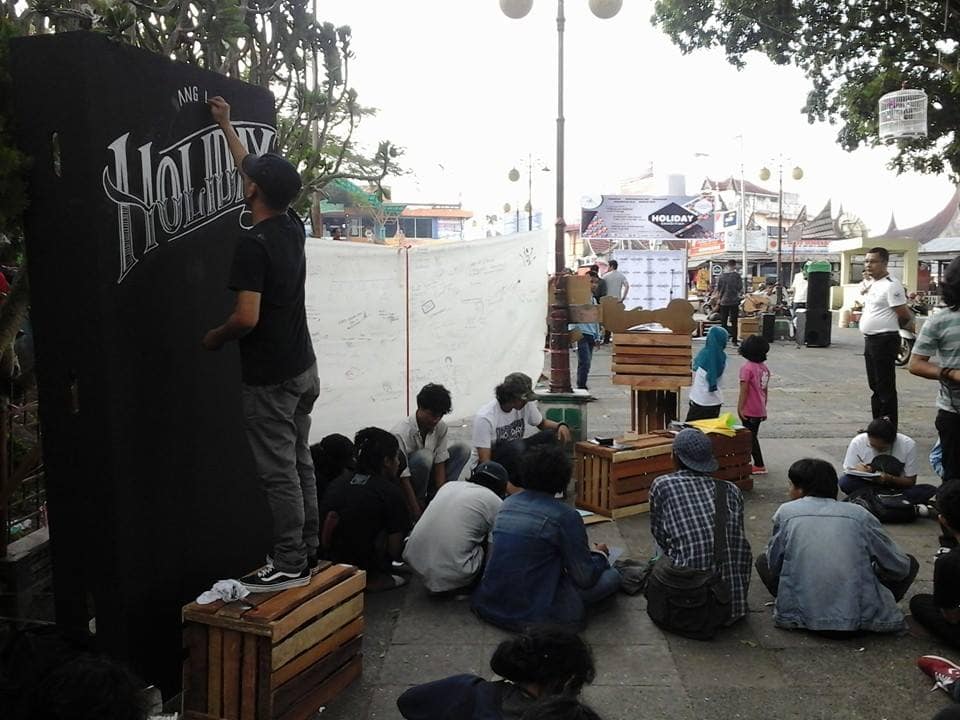 Holiday merupakan sebuah pameran yang juga timbul dari kegelisahan seniman lokal yang berfikir kenapa iklim berksenian daerahnya tidak terbangun dengan baik sedangkan daerah ini (Bukittinggi) adalah salah satu kota wisata yang banyak mendatangkan wisatawan lokal maupun internasional. pada kesempatan kali ini tentu yang disasar adalah seniman- seniman yang berpandangan bahwa seniman adalah adalah satu komponen yang seharusnya mempunyai peran untuk membangun kotanya dan melestarikan kebudayan lokalitas. dalam pameran “Holiday” nantinya seniman diharapkan dapat menampilkan pemikiran potensi lokalitas yang dapat dikames secara kreatif dan menarik sesuai dengan kecenderungan masing masing. sehinga kita sama sama bisa membangun dan melestarikan kebudayaan lokalitas dengan cara seniman lokal itu sendiri.